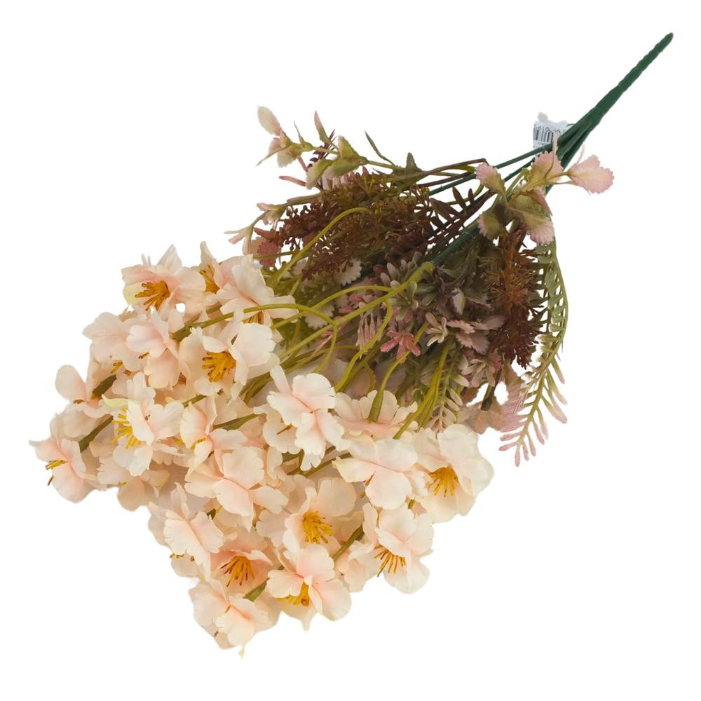 Az 7 ágú virágos csokor gyönyörű, finom, elegáns megjelenésű selyemvirág, ami bármilyen dekorációban megállja a helyét. A szárak formázhatók a bennük található fém drótnak köszönhetően, így könnyedén igazíthatod a virágokat az elképzeléseidhez.