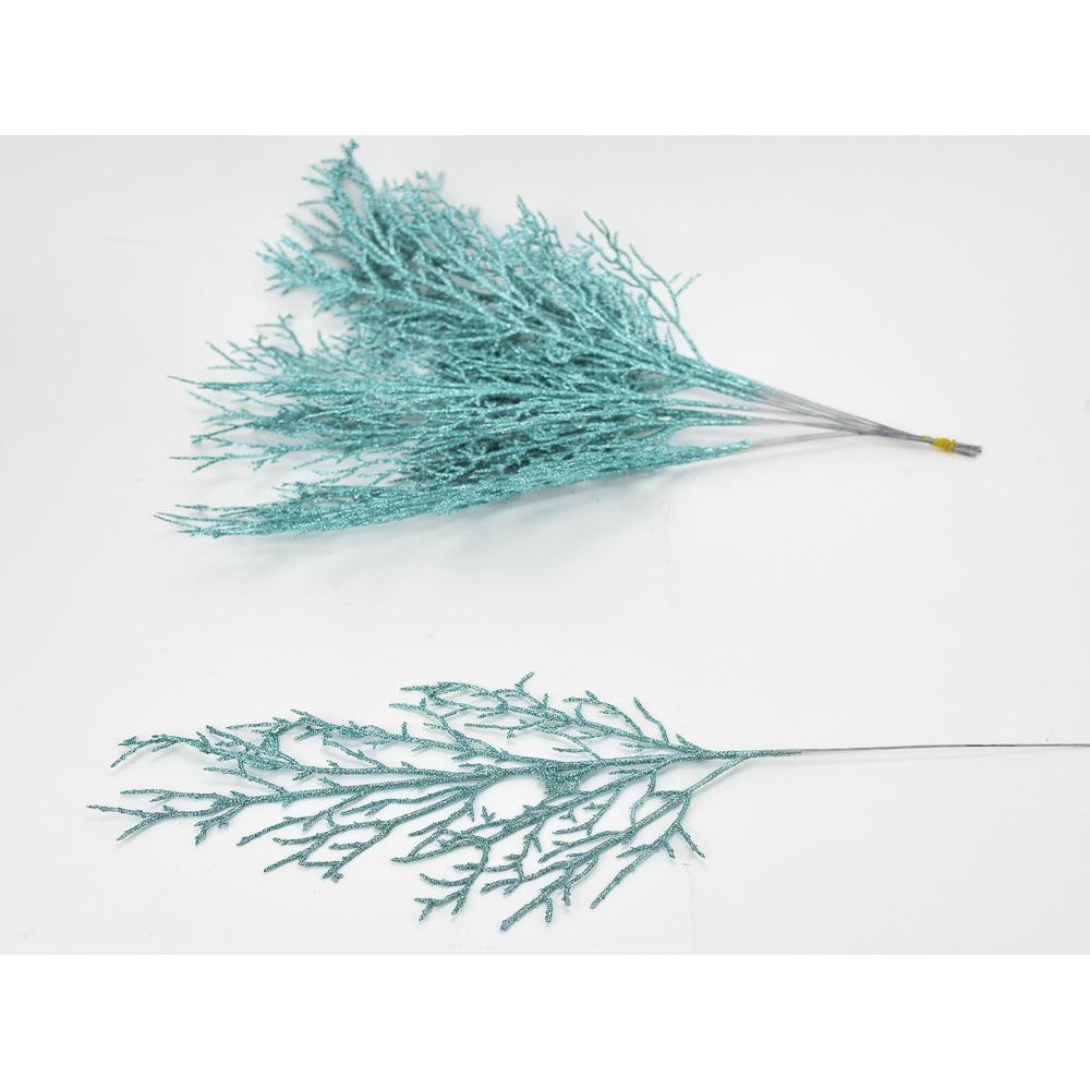 Nagy türkiz csillámos ágasbog műnövény dekor: otthoni vagy kirakati díszítéshez. Önmagában vagy kiegészítő díszítéshez, készítményekhez egyaránt használható.