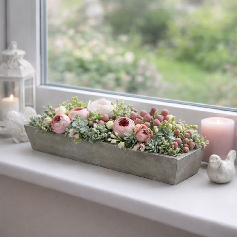 Az Antik szürke fa tálca közepes 46x16x2,5 cm letisztult, elegáns megjelenésével kiváló alap különböző dekorációkhoz. Az antikolt szürke felület visszafogott, mégis karakteres hatást kelt, így szépen kiemeli a rá helyezett díszítőelemeket. Hosszúkás formájának köszönhetően ideális asztaldíszekhez, futó jellegű kompozíciókhoz vagy több elemből álló dekorációkhoz. Stabil kialakítása lehetővé teszi virágok, tűzőhab vagy egyéb dekorációs elemek elhelyezését is. Tökéletes választás szezonális dekorációkhoz, ünnepi asztalokhoz vagy üzleti megjelenítéshez, ahol fontos az egységes és igényes összhatás.