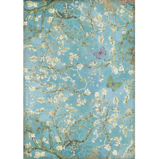 DFSA4546 - Dekupázs rizspapír A4 csom. - Szalon virágok kék háttérrel pillangóva