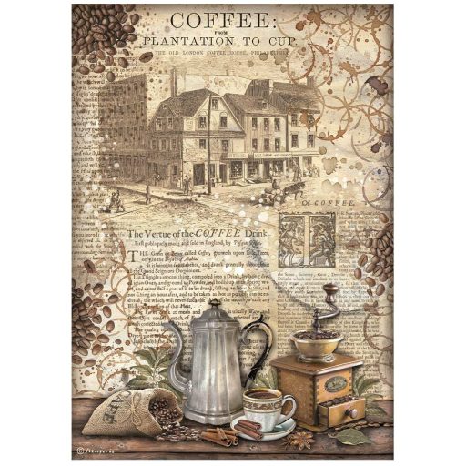 DFSA4825 - A4 rizspapír csom. - Coffee and Chocolate grinder – vékony, minőségi dekupázs rizspapír kreatív és scrapbook projektekhez.