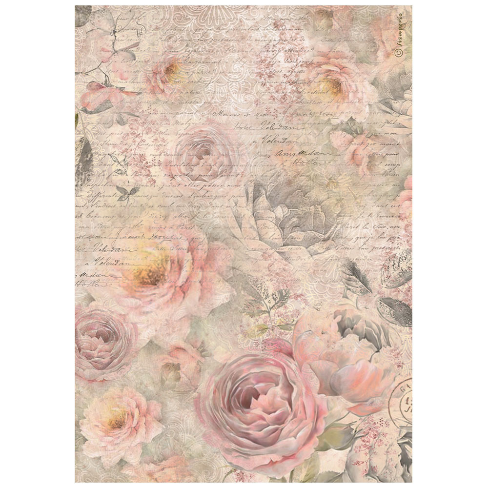 DFSA4877 - A4 rizspapír csom. - Shabby Rose roses pattern – vékony, minőségi dekupázs rizspapír kreatív és scrapbook projektekhez.