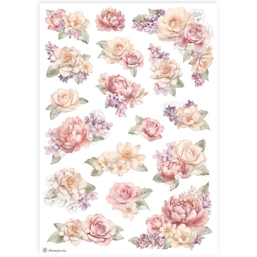 DFSA4901 - Dekupázs rizspapír A4 csom. Rózsás sarokdíszek – vékony, minőségi dekupázs rizspapír kreatív és scrapbook projektekhez.