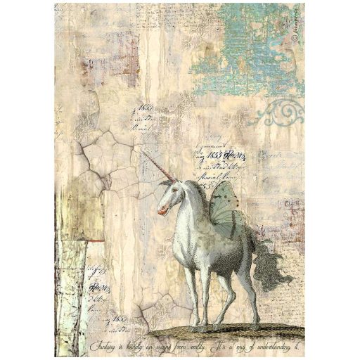 DFSA4929 - A4 rizspapír csom. - Wonderland unicorn – vékony, minőségi dekupázs rizspapír kreatív és scrapbook projektekhez. Kiválóan tapad dekupázs ragasztóval.