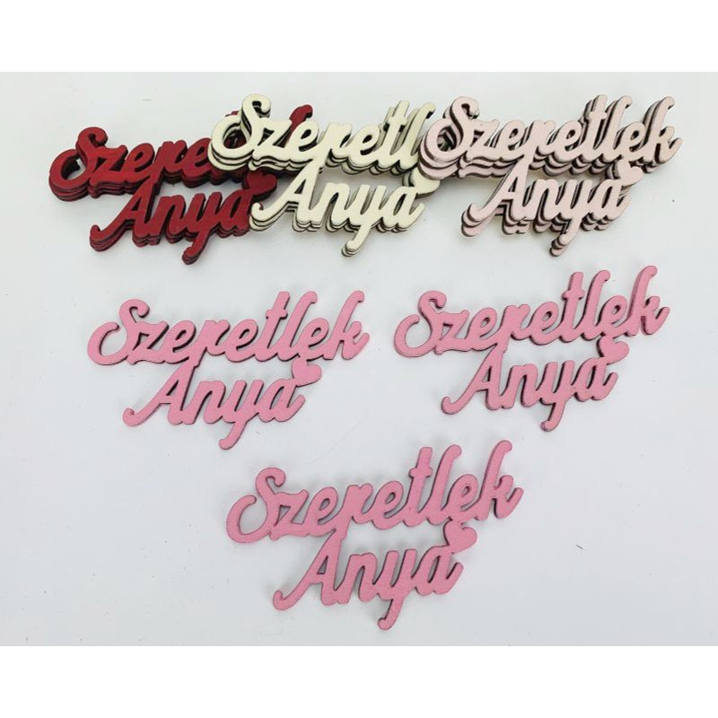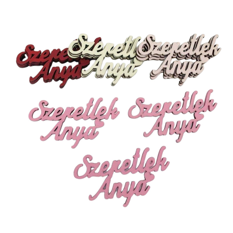 Fa felirat - "Szeretlek Anya" felirat 9,5cm 3db/csomag - Málna