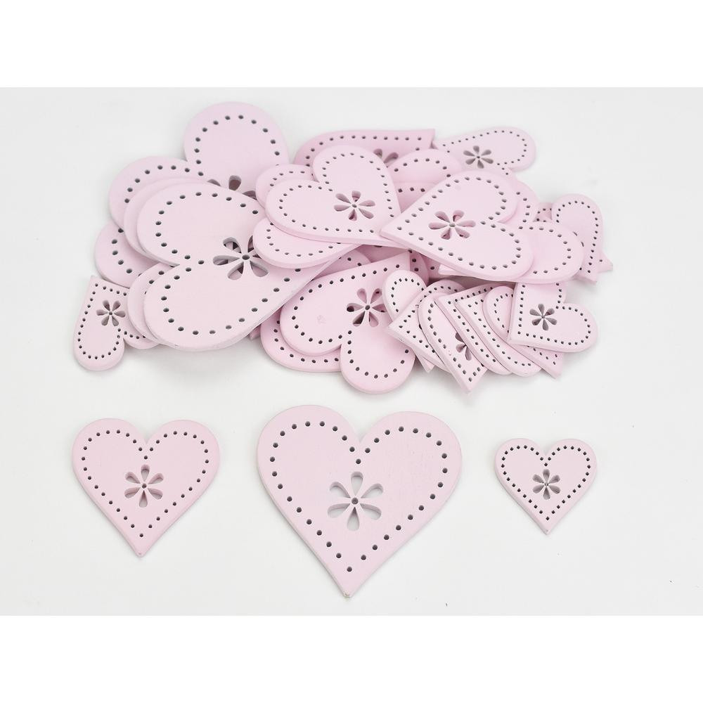 Fa virágdíszes szív rózsaszín 30db/csomag