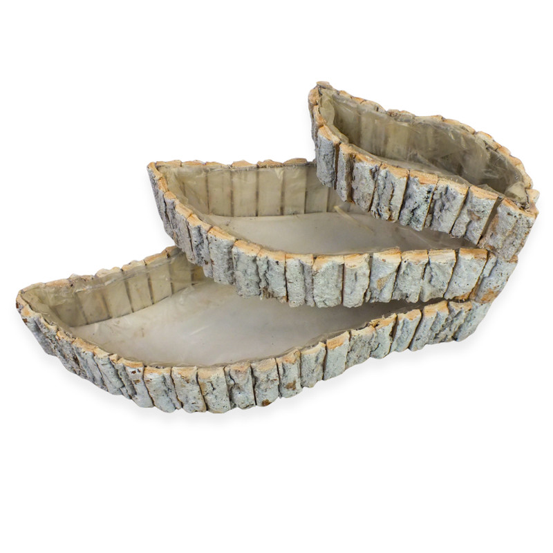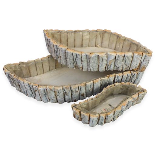 A fakéreg virágláda szett íves fehér kivitelben különleges, lágy vonalvezetésű dekorációs alap, amely természetes megjelenésével azonnal meleg hangulatot teremt. A fakéreg borítás rusztikus karaktert ad, míg a fehér szín letisztult és könnyen kombinálható más dekorációs elemekkel. A három különböző méretű, íves forma elegáns és harmonikus összeállításokat tesz lehetővé, így ideális választás virágkötőknek és otthoni dekorációkhoz egyaránt. A bélelt belső rész praktikus használatot biztosít élővirággal, tűzőhabbal vagy száraz dekorációval, így tökéletes asztaldíszekhez, ajándék kompozíciókhoz és szezonális dekorációk készítéséhez.