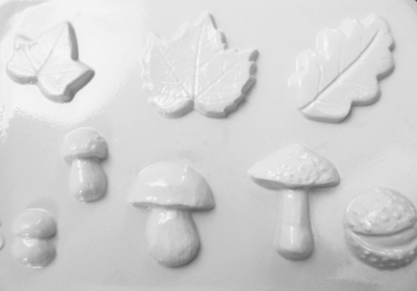 Gipszkiöntő forma, normál - Gombák, gesztenye, levelek – rugalmas szilikon öntőforma gipsz, gyanta vagy cement öntéséhez.
