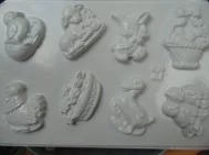 Gipszkiöntő forma, normál - Húsvéti 8 motívum – rugalmas szilikon öntőforma gipsz, gyanta vagy cement öntéséhez.