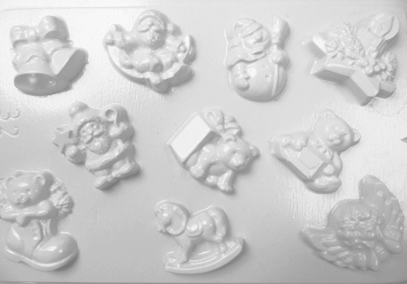 Gipszkiöntő forma, normál - Karácsonyi 10 motívumos – rugalmas szilikon öntőforma gipsz, gyanta vagy cement öntéséhez.