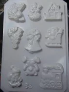 Gipszkiöntő forma, normál - Karácsonyi 9 motívumos – rugalmas szilikon öntőforma gipsz, gyanta vagy cement öntéséhez.