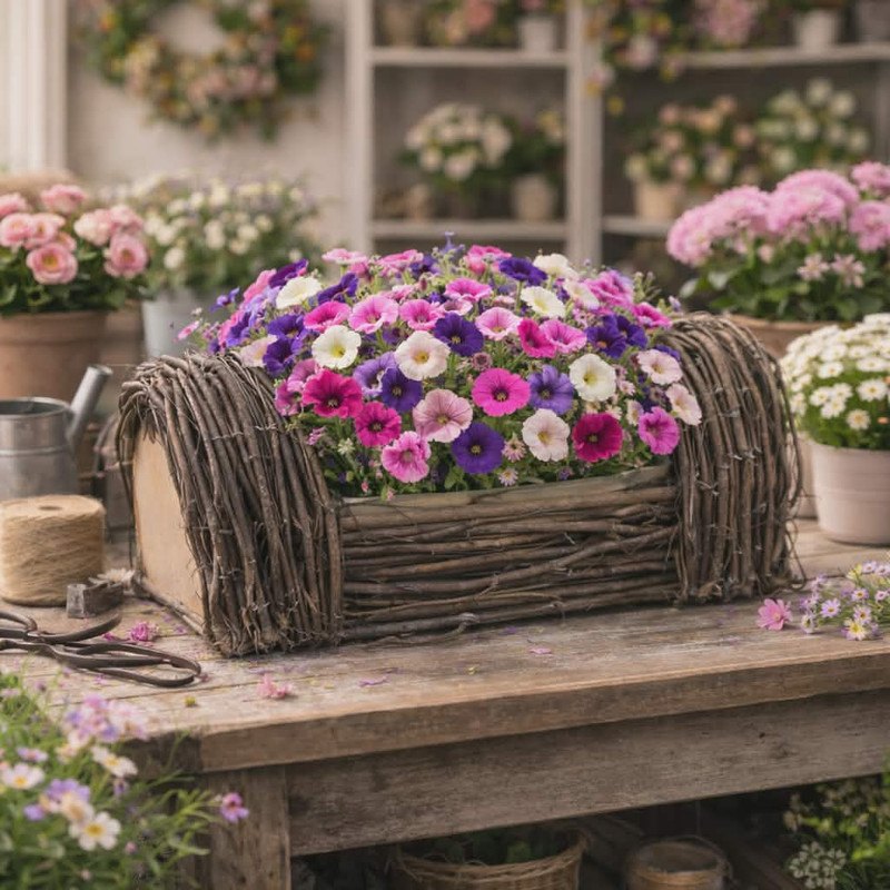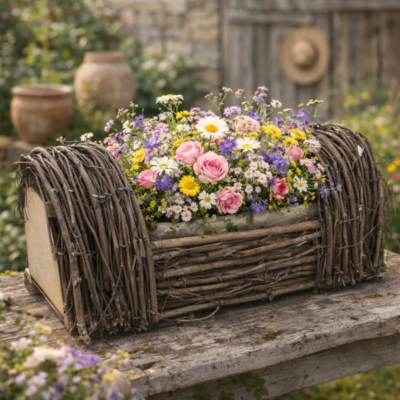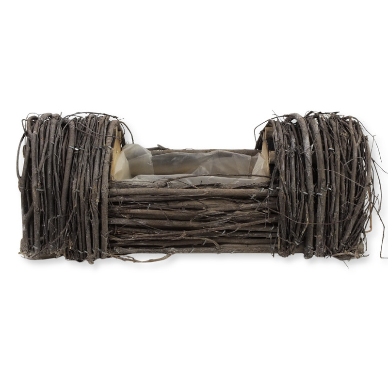 Az Indás virágláda 30,5x15x11 cm természetes, rusztikus megjelenésével különleges alapot ad dekorációkhoz. Az indás kialakítás egyedi, kézműves hatást kelt, amely tökéletesen illeszkedik természetközeli stílusú kompozíciókhoz. A belső bélésnek köszönhetően használható friss virágokhoz, tűzőhabhoz vagy száraz dekorációkhoz is. Ideális választás asztaldíszekhez, ajándék kompozíciókhoz és szezonális dekorációkhoz.
