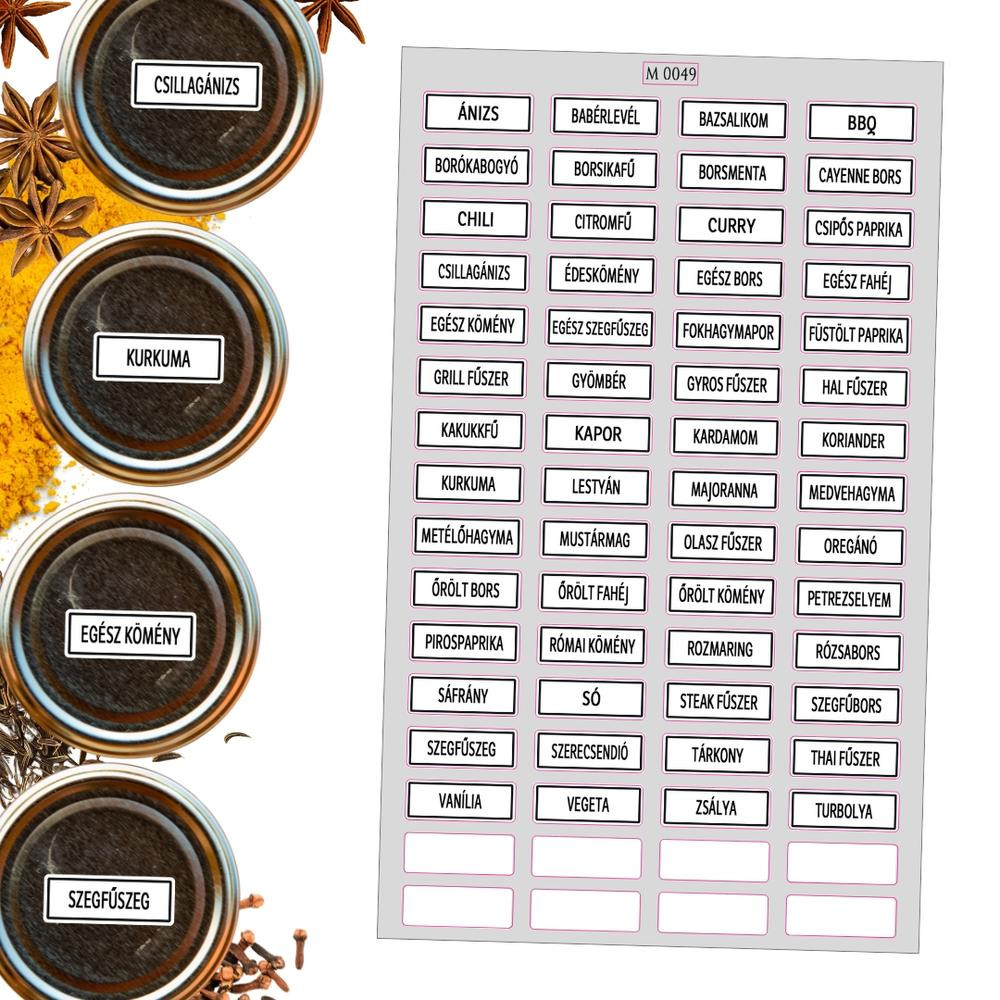 Matrica - Fűszerek 3x1,1cm 56+8db üres/lap M0049