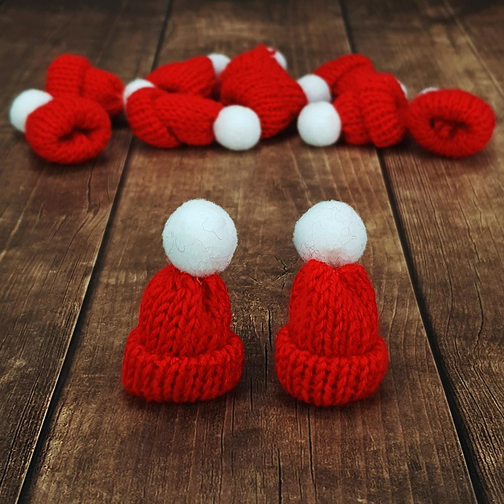 Aprócska kötött sapkák, pompom ladbával a tetején. Karácsonyi, téli dekorációkhoz, készítményekhez. Pl.: karácsonyfadísz, asztalidísz vagy falidísz kiegészítőnek.