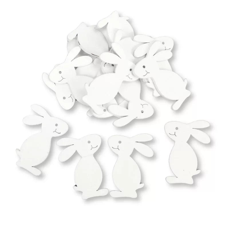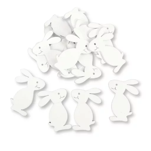 A mosolygós duci nyuszi fehér színben kedves és játékos dekorációs kiegészítő, amely tökéletes választás tavaszi és húsvéti díszítésekhez. A letisztult fehér szín és a barátságos forma vidám hangulatot teremt, miközben könnyen kombinálható más dekorációs elemekkel. A 15 darabos kiszerelés lehetővé teszi, hogy több kompozícióban is egységesen felhasználható legyen, legyen szó ajándékcsomagolásról, asztaldíszről vagy kreatív projektről. Könnyű, jól ragasztható, így ideális választás különböző dekorációs megoldásokhoz.