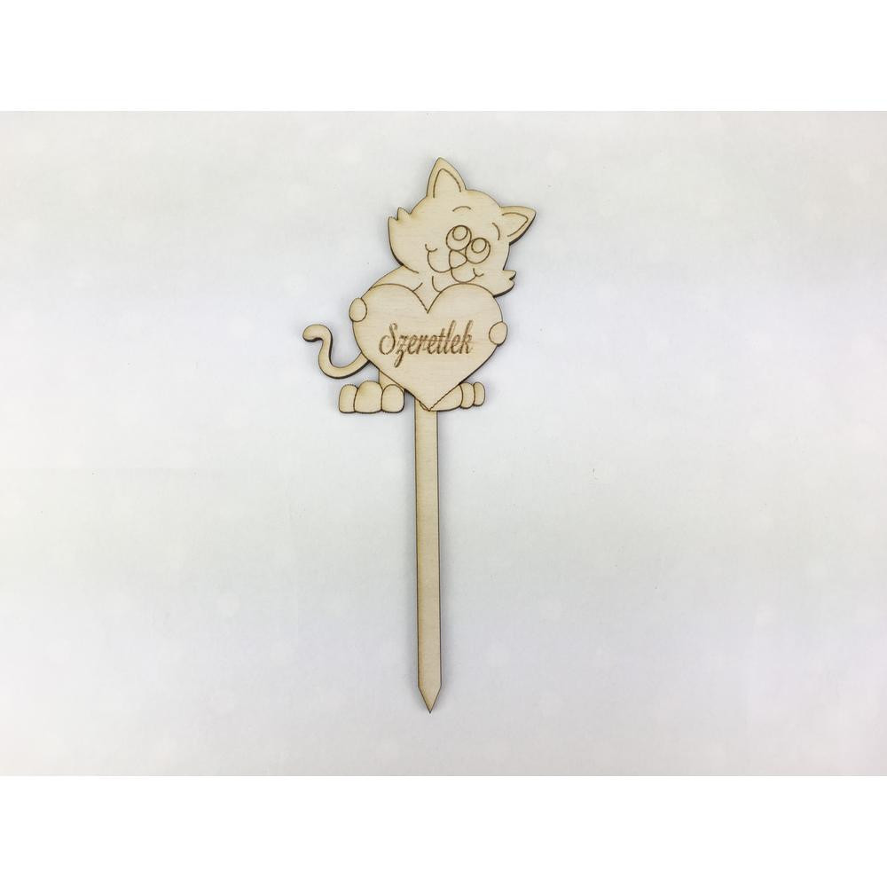 Natúr fa - Beszúrós cica "Szeretlek" 16,5cm