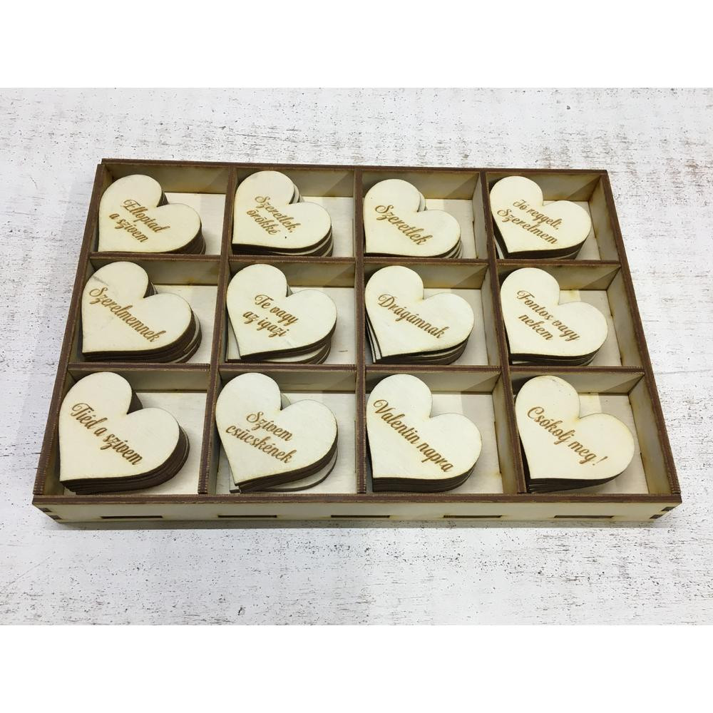 Natúr fa - Doboz gravírozott szívekkel  60db szív/csomag