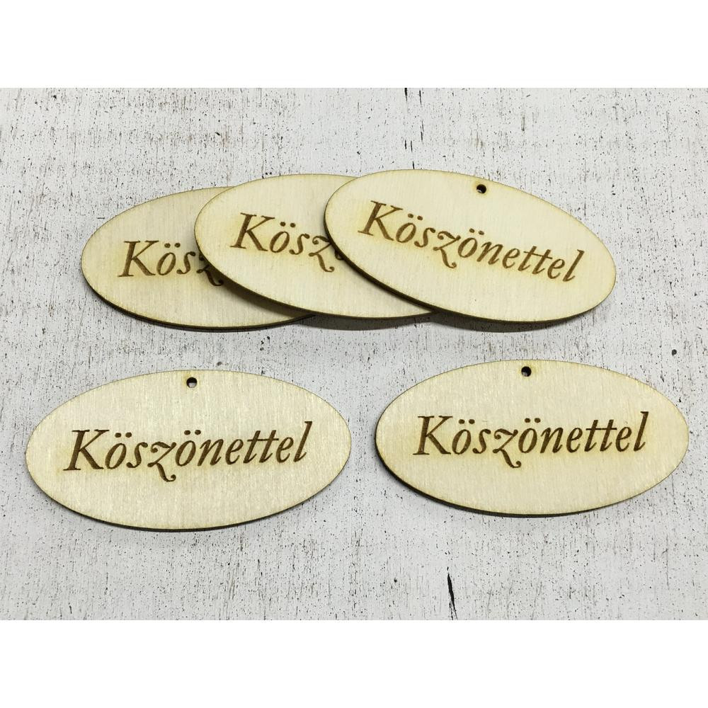 Natúr fa - "Köszönettel" gravírozott ovál tábla 4x8cm 5db/csomag