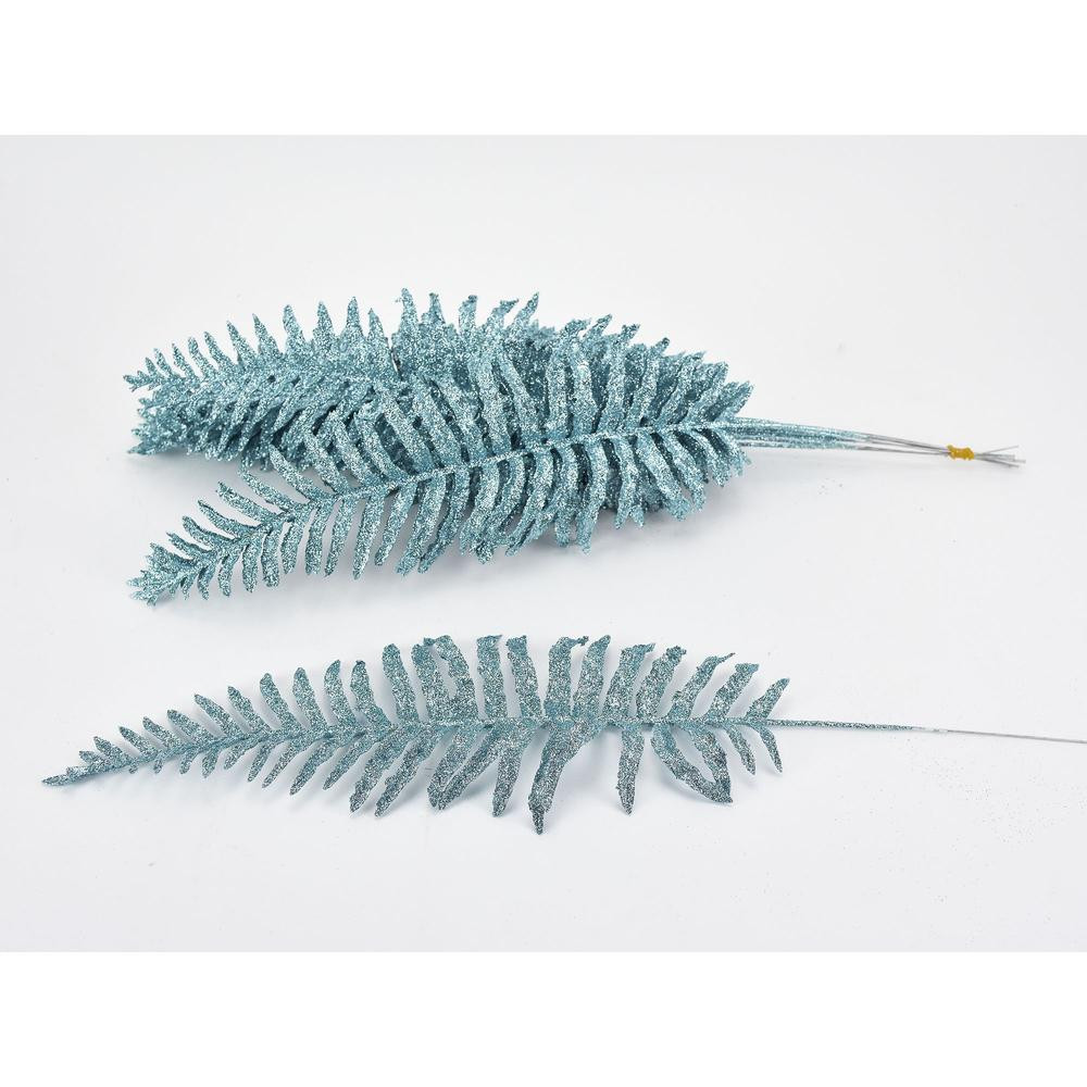 Páfrány levél csillámos türkiz 12db/csomag