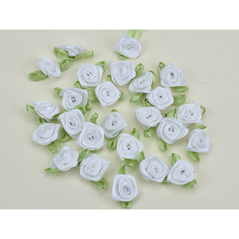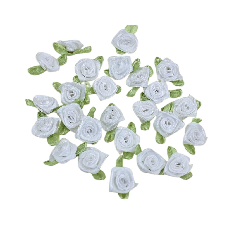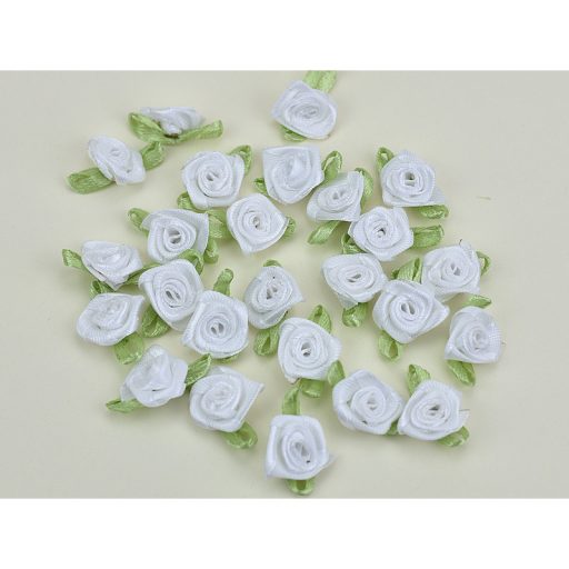 Szatén rózsafej dekoráció. Díszíthető vele csokor, asztali dísz, koszorú, egyéb készítmények. 2cm
