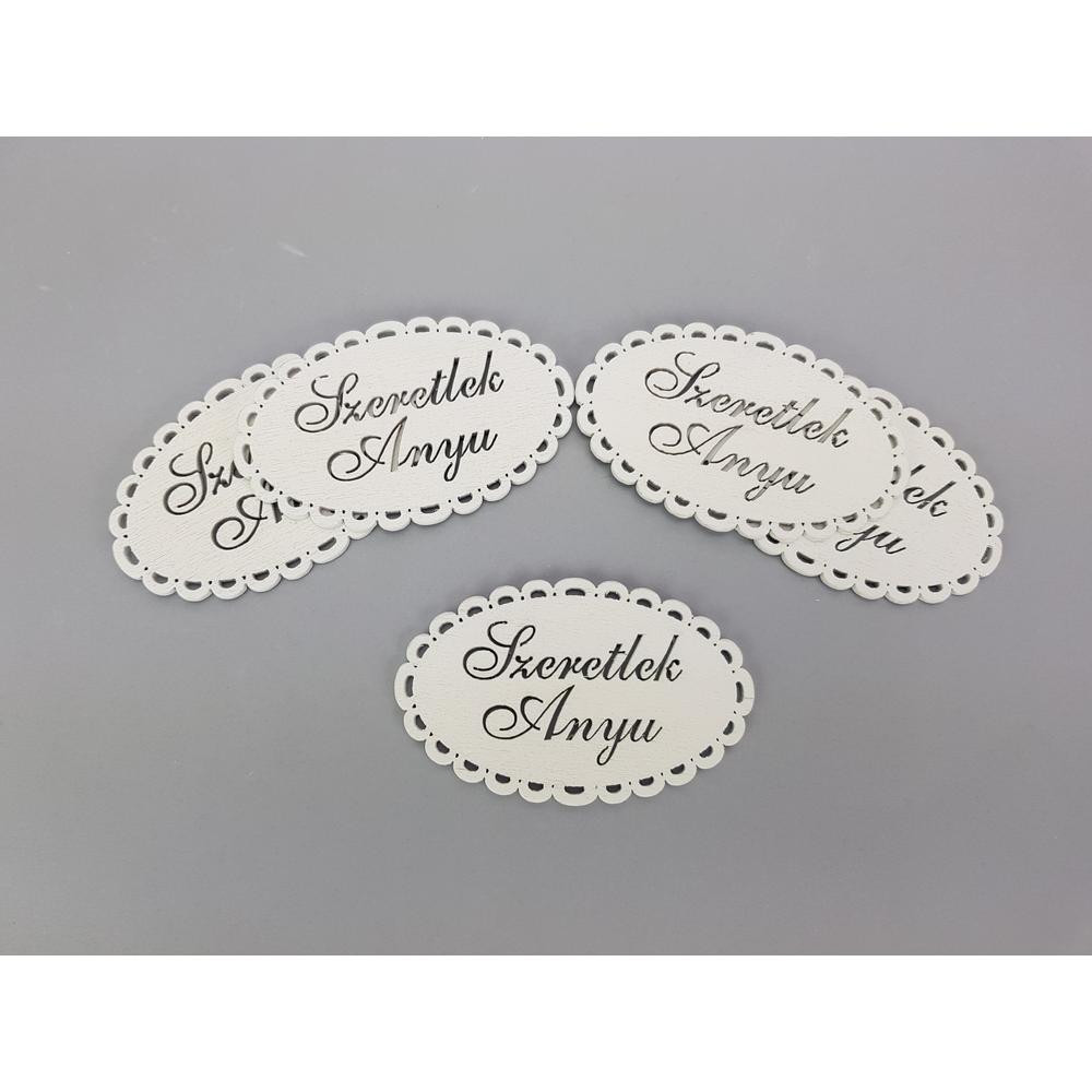 Szeretlek Anyu" csipkés ovál tábla fehér 5db/csomag