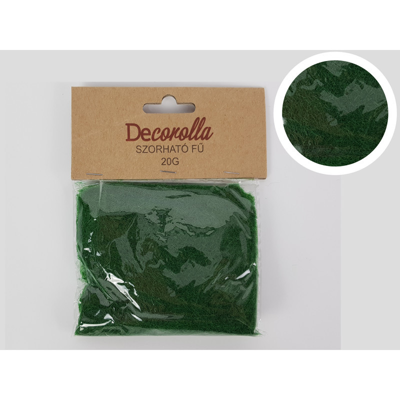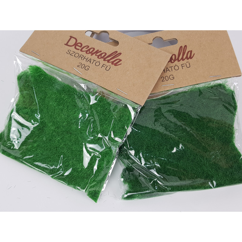 A sötétzöld szórható fű makettekhez, kirakatokhoz szánt füves felület kialakítására való kiegészítő. Ragasztóval kombinálható.