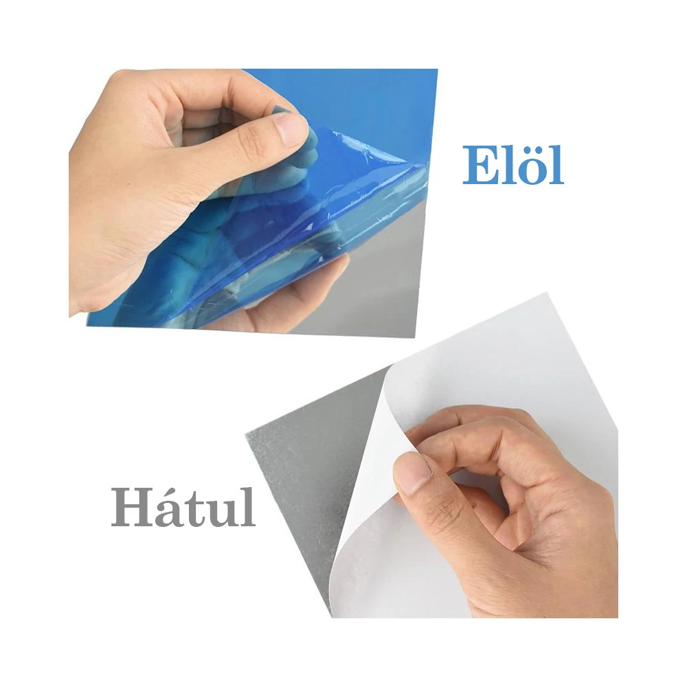 Tükör matrica, ragasztós hátlappal és védőfóliával ellátva.