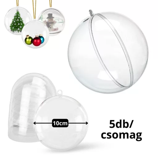 Ajándéktartó szétválasztható gömb műanyag 10cm 5db/csomag – karácsonyi koszorúhoz és asztaldíszhez
