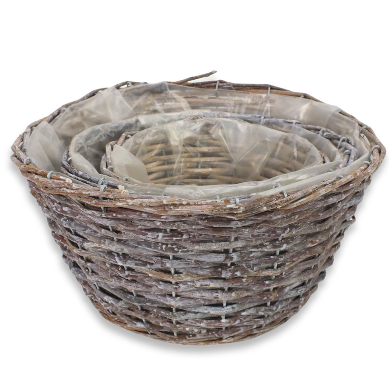 Antikolt vessző tál bélelt 3db/szett 9/# – tároláshoz és lakásdekorációhoz