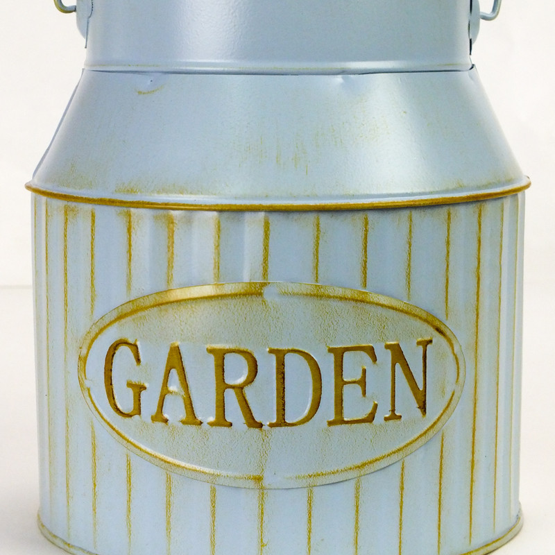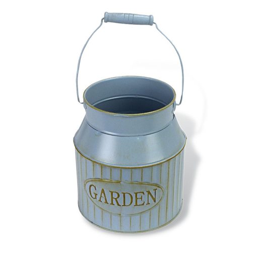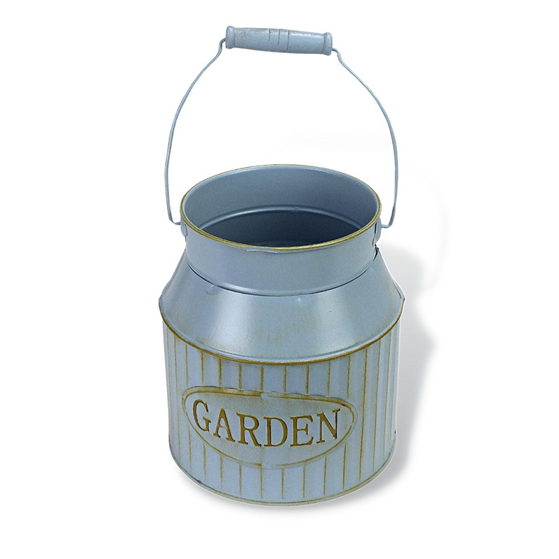 "Garden" feliratos bádog kaspó, fa fogantyús füllel.Strapabíró virágtartó bordázott oldallal, beltérre és kültérre egyaránt.Méret: 16x18cm, talp átmérő: 16cm, tető átmérő: 13cm. Felhasználható tároláshoz, virágcserép fedéshez és lakásdekorációhoz.