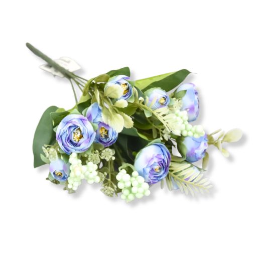 Boglárka csokor bogyóval - kék – virágdekorációhoz, koszorúhoz