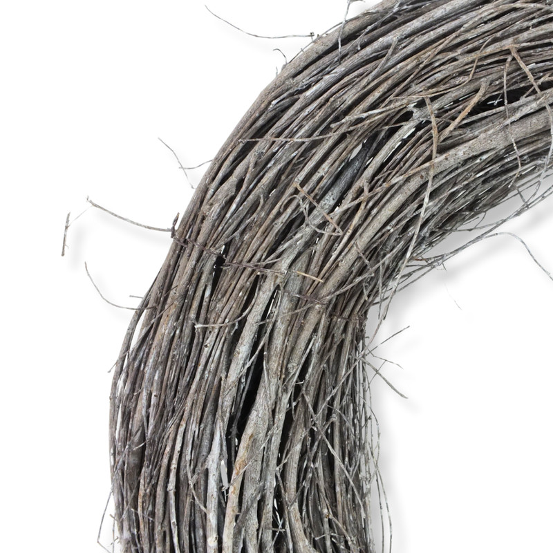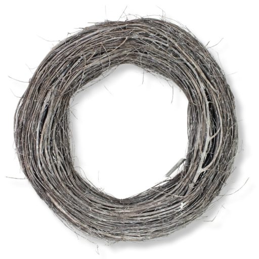 Különleges, szürke vesszőből készült koszorú alap. Elegáns, kifejezetten strapabíró alap, aminek stabilitását erős fém váz biztosítja.Méret: átmérő: ~40cm, vast.: ~100mm,. Felhasználható koszorúkészítéshez, ajtódísz és asztaldísz alapjának.
