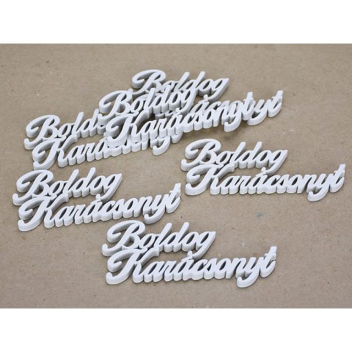 Boldog karácsonyt felirat fehér 10cm 6db/csomag – koszorúhoz, asztaldíszhez