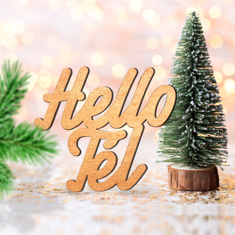 Bronz "Hello Tél" felirat színes 10x10cm – karácsonyi koszorúhoz és asztaldíszhez