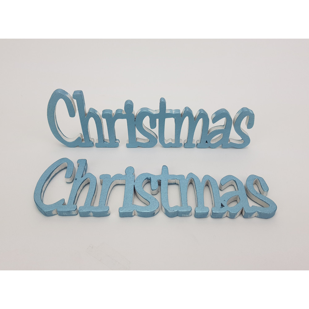 Christmas felirat metál kékezüst 15cm 2db/csomag – koszorúhoz, asztaldíszhez