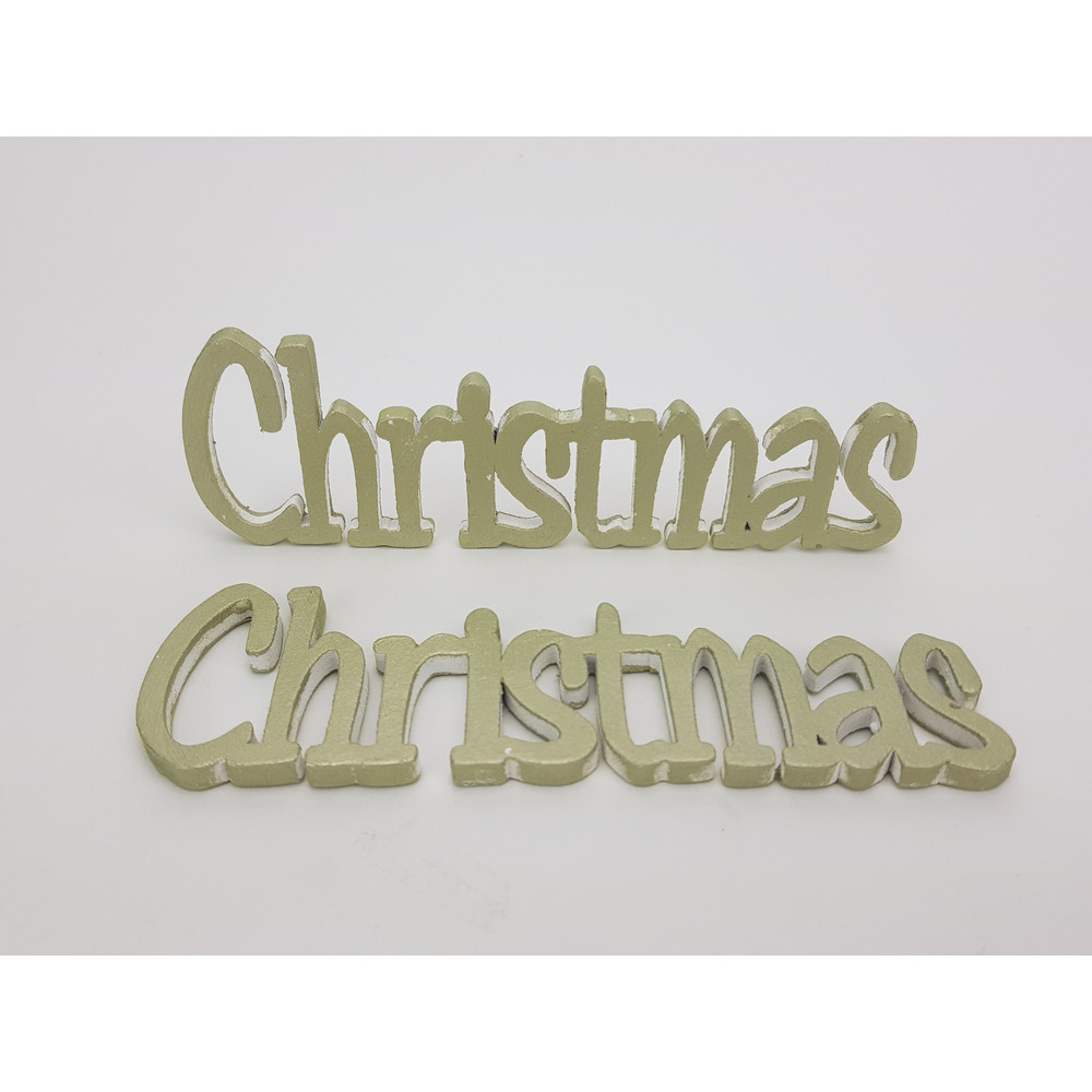 Christmas felirat metál zöldarany 15cm 2db/csomag – koszorúhoz, asztaldíszhez
