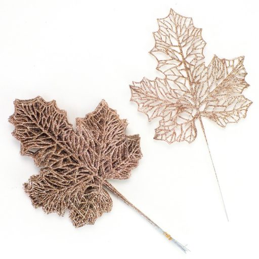Csillámos juharlevél rózsaarany 10db/cs – koszorúhoz, természetes dekorációhoz