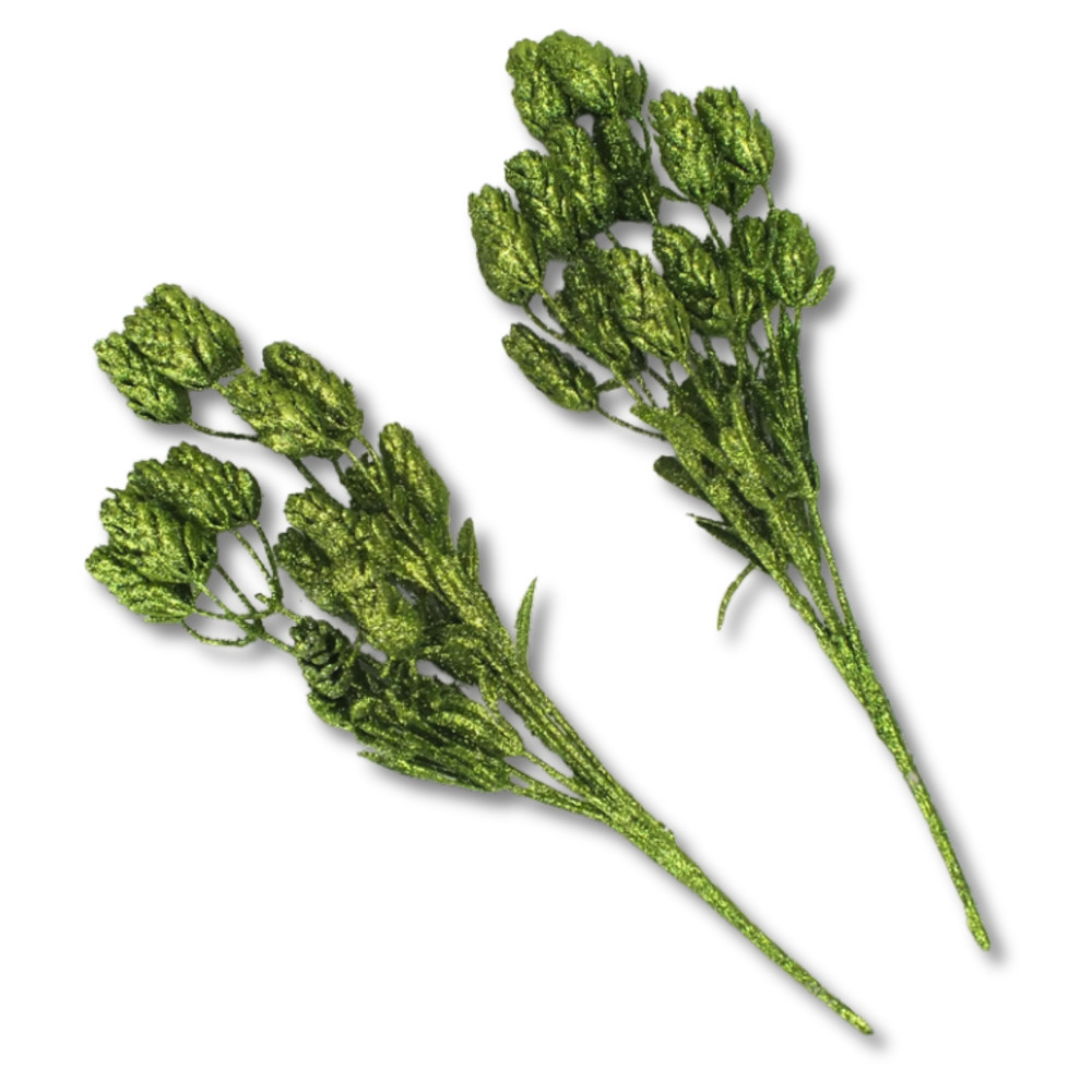 Csillámos komló csokor zöld  2db/csomag – koszorúhoz, természetes dekorációhoz