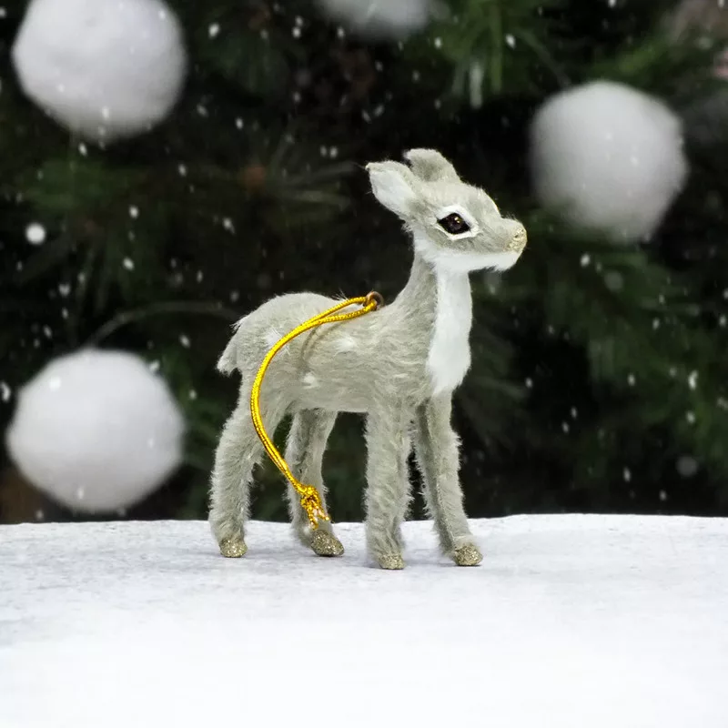 Csillámos patás bambi szürke prémium 9cm – karácsonyi dekorációhoz