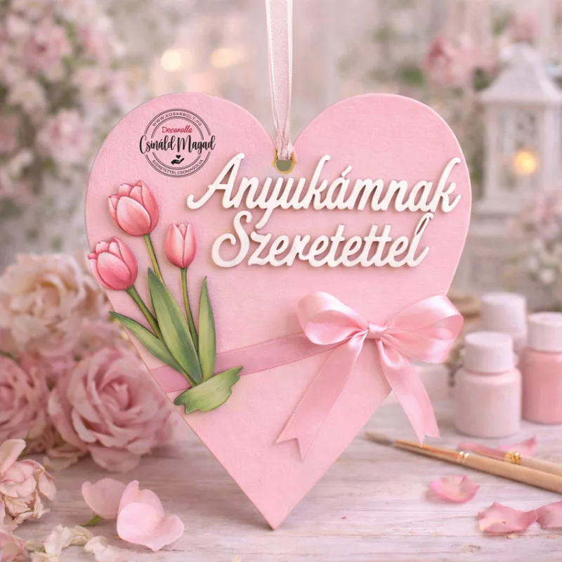 Csináld magad - Anyák napi szív "Anyukámnak Szeretettel" – anyák napi ajándékhoz és dekorációhoz