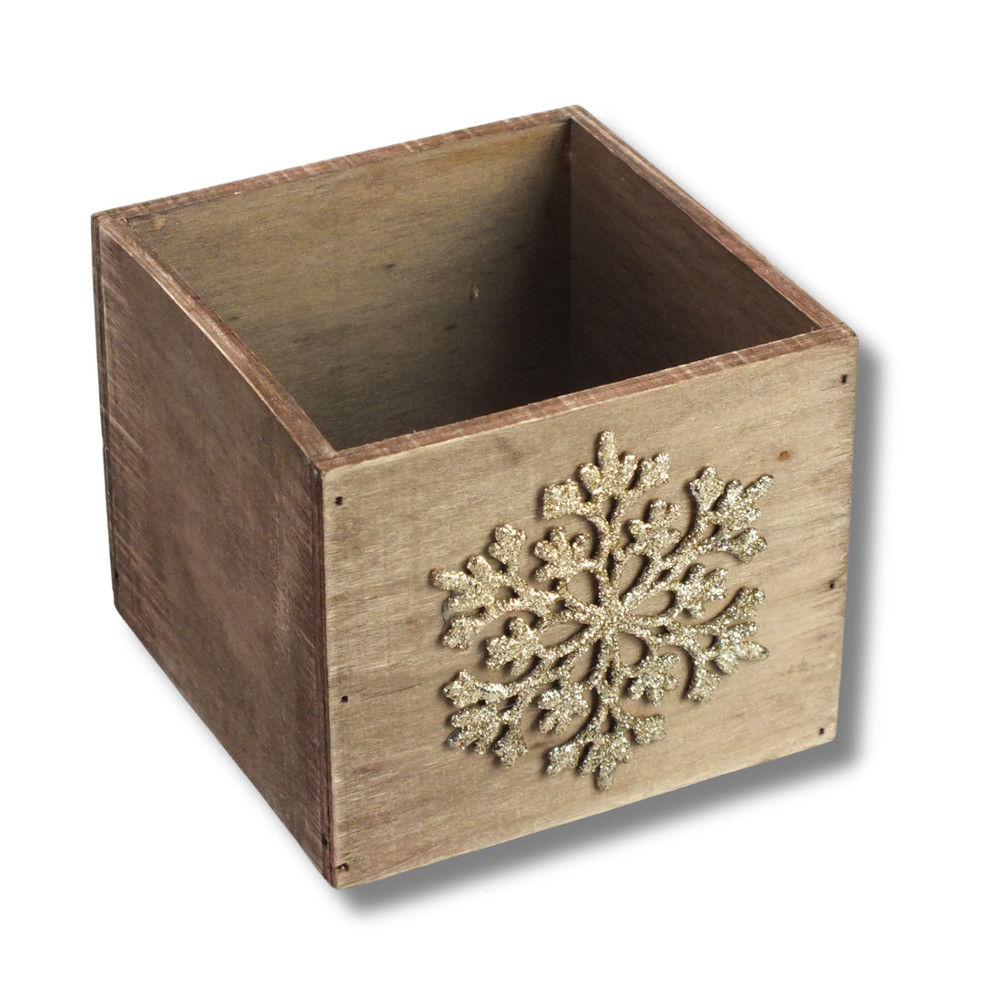 Dekoláda rusztikus kocka 13x13X11cm - Pezsgő hópihés – ajtódíszhez, koszorúalapnak
