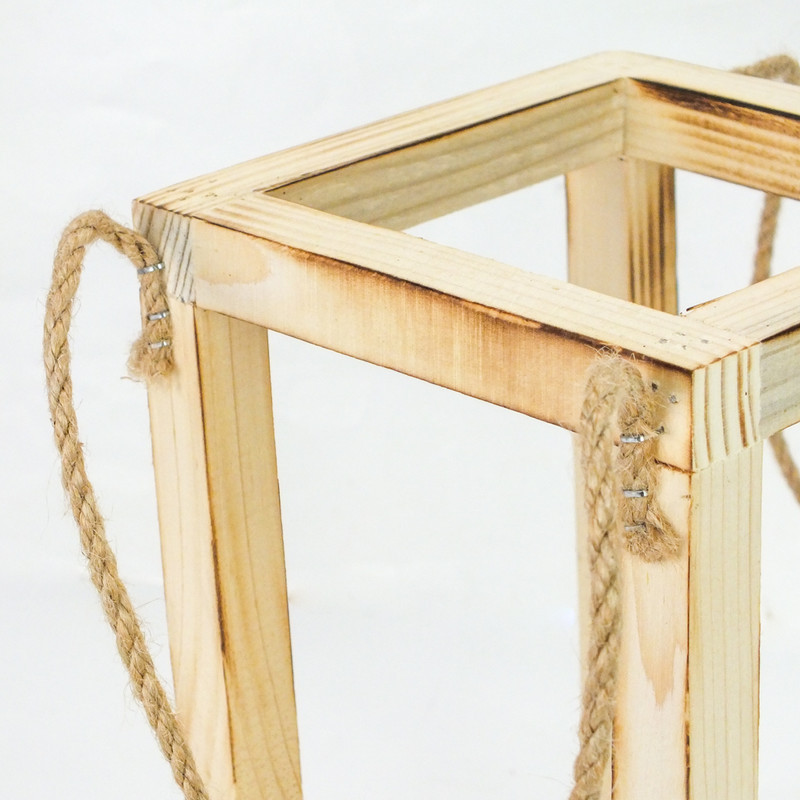 Égetett szélű, fa lanterna. A belsejében kialakított hellyel, az egyedi dekorációk és készítmények részére. Nyitott tetejű, spárgával ellátott akasztóval. Kiváló választás fotózásokhoz, esküvőkre, természetbarátok számára díszítőelem, illetve kültéri eseményekre.Méretek: mag: 28cm, szél: 15x15cm. Felhasználható karácsonyi hangulatvilágításhoz és ünnepi dekorációhoz.