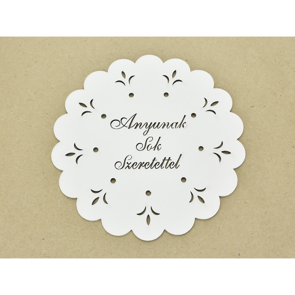 Díszes "Anyunak sok szeretettel" tábla koszorúra fehér 18cm – festéshez, dekorációhoz
