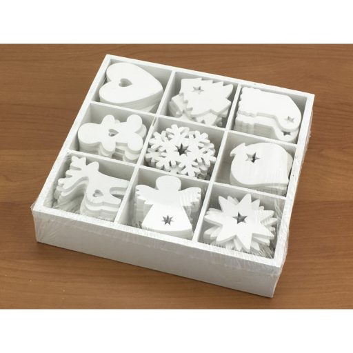 Dobozos karácsonyi díszek fehér 90db/doboz – karácsonyi koszorúhoz és asztaldíszhez
