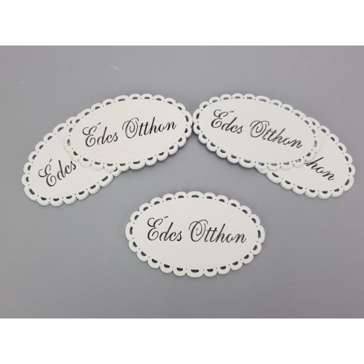 "Édes otthon" csipkés ovál tábla fehér 5db/csomag – koszorúhoz és asztaldíszhez