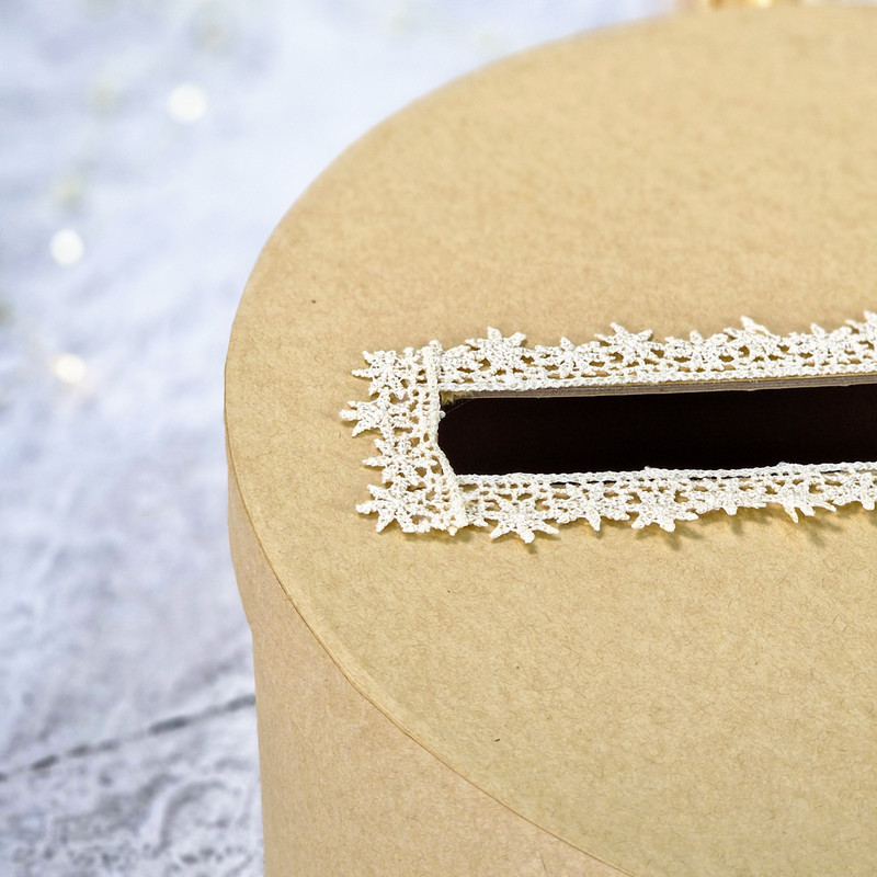 Esküvői persely natúr csipkés 25cm – esküvői dekorációhoz