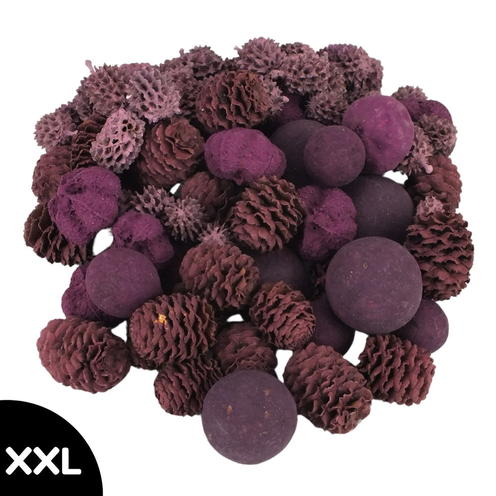 XXL terméscsomag a lila szín árnyalataiban, különböző igényes dekorációk elkészítéséhez és díszítéséhez. A kreatív terméscsomagok tökéletesek helykitöltésre és természetes dekorációkhoz. Ideálisak koszorúk, asztaldíszek és egyéb kreatív projektek készítéséhez.