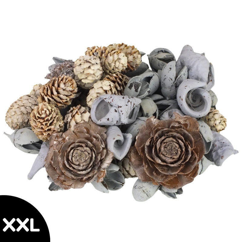 XXL terméscsomag a kék és a természet színeinek árnyalataiban, különböző igényes dekorációk elkészítéséhez és díszítéséhez. A kreatív terméscsomagok tökéletesek helykitöltésre és természetes dekorációkhoz. Ideálisak koszorúk, asztaldíszek és egyéb kreatív projektek készítéséhez.