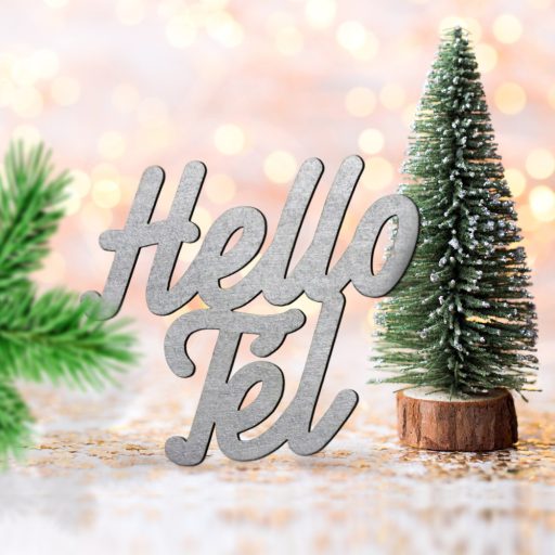 Ezüst "Hello Tél" felirat színes 10x10cm – karácsonyi koszorúhoz és asztaldíszhez