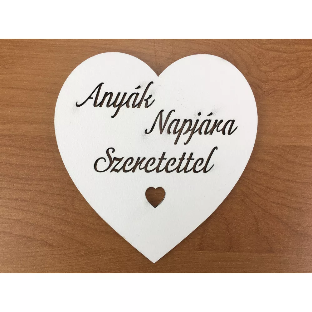 Fa - "Anyák Napjára Szeretettel" szív fehér 10cm – festéshez, dekorációhoz